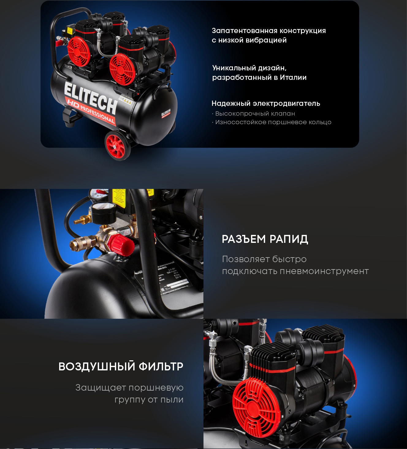 Безмасляный малошумный компрессор ELITECH HD ACF 500-50S предназначен для подачи сжатого воздуха. Используется для работы с пневмоинструментом, краскопультами, мобильными и продувочными пистолетами, пистолетами для накачки шин и другим пневматическим оборудованием.