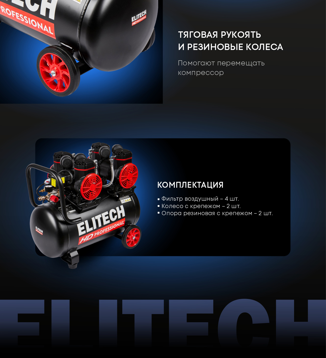 Компрессор безмасляный малошумный Elitech ACF 500-50S 204540