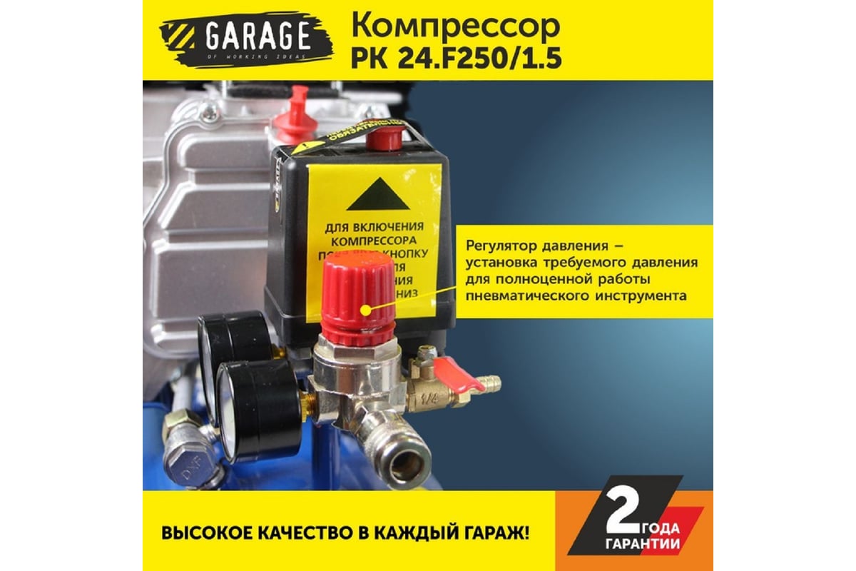 Компрессор Garage PK 24.F250/1.5 - это универсальный помощник для вашего гаража, отличающийся надежностью и высокой функциональностью.