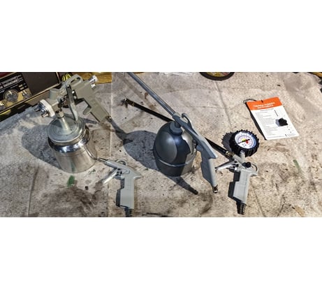 Весьма хороший компрессор с комплектом оборудования для гаража, так сказать в базовой комплектации. Качество в целом хорошее, запускается легко. Потребление около 960 ватт при нагрузке и не меняется вплоть до полного отключения. Качает не сказать что долго, для бытовых нужд хватит. Если продувать радиатор, разок точно включится дополнительно, сказывается объём бака. Но повторюсь, для гаража в быту хватит. Для покраски небольшого объёма тоже, но нужны разные распылители или лучше свой нормальный поставить. Товаром доволен. 👍