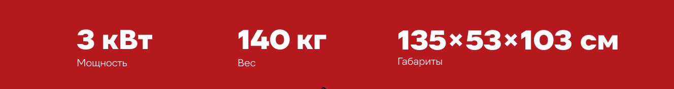Мощность 3 кВт, трехцилиндровый. Заявлено 400 л/мин.