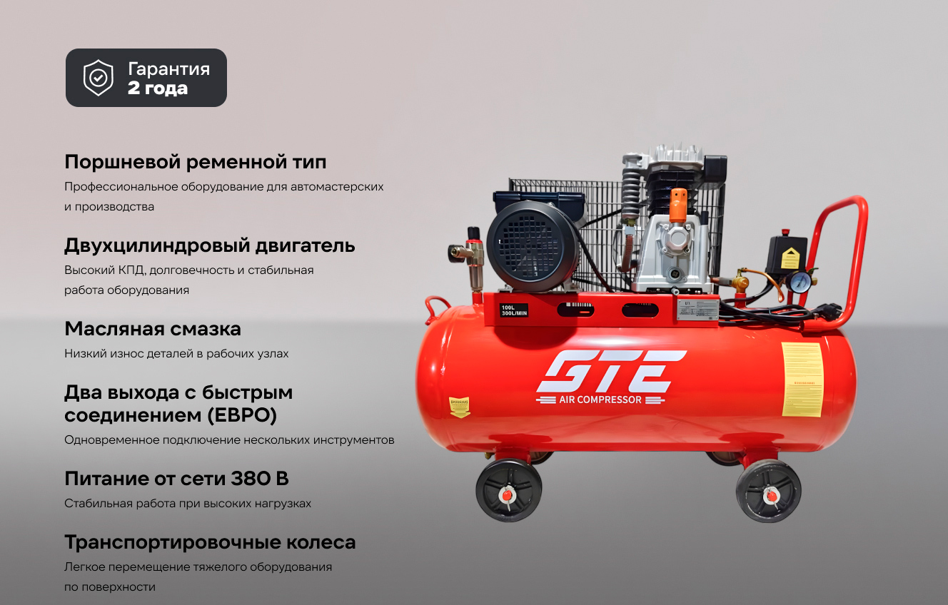 Компрессор поршневой с ременным приводом одноступенчатый GTE MR300A600A 380В, ресив. 300 л, 600л/мин GTE-MR300A600A