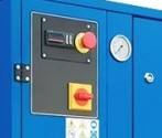 Винтовой компрессор оснащен частотным преобразователем, а также простой панелью управления с кнопкой аварийной остановки двигателя.