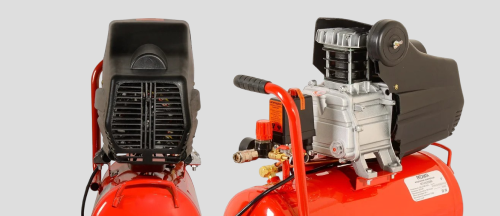 - Транспортировочный комплект Благодаря колесам и тяговой рукоятке можно без проблем передвинуть компрессор одному