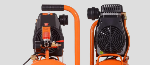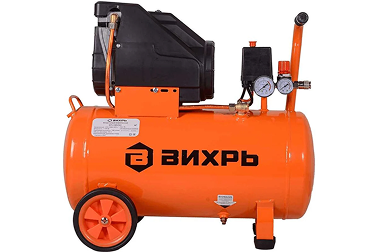 - Тяговая рукоять и колеса Позволяют перемещать компрессор по рабочей зоне
