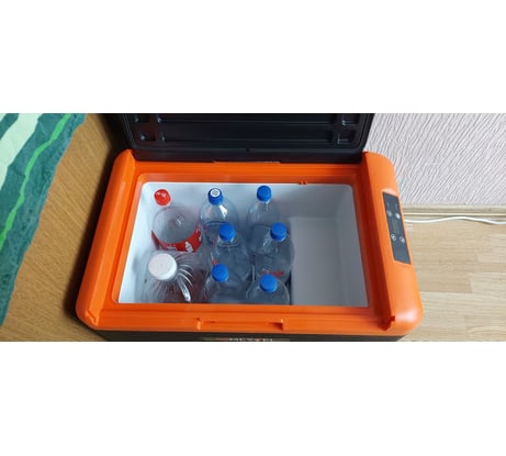 Используем уже два года, беспощадно, летом незаменимая вещь на отдыхе. Вмещается 6 полторашек, одна 5л бутылка и 1 двуйхлитровая, да что там говорить вмещается всё, что нужнйо охладить. Перед поездкой охлаждаем до минус 21 чтоб, довести продукты холодным, т.к. в машине гнездо автоприкуривателя только одно, а приехав на отдых подключаем либо к генератору, либо к аккумулятору. Внутреняя поверхность холодильника хорошо моется. Есть несколько режимов энергопотребления. Одним словом холодильник лучшее приобретение.