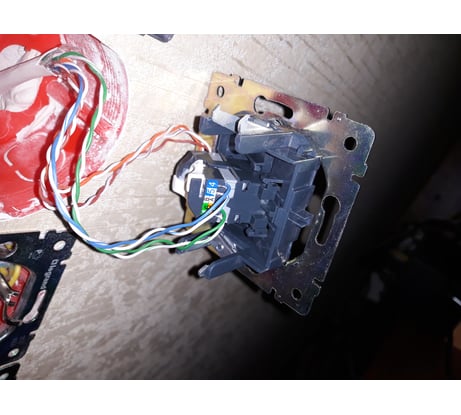 1. Монтаж розетки интуитивно понятен, инструкция для сборки не требуется. Приведу некоторые рекомендации по сборке. У розетки две схемы подключения, необходимо использовать верхнюю схему В. Срезать верхнюю изоляцию, распустить скрученные провода, вставить их в пазы до щелчка и вставить фишку в саму розетку. Концы зачищать не требуется. У розетки есть механизм врезания контактных ножей в проводники. 2. Модульная сборка, что позволяет вставить сердцевину из другой серии. 3. Обеспечивает надежное механическое соединение и высокую скорость интернета.