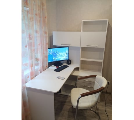 Такая модель компьютерного стола позволяет организовать максимально удобную и функциональную рабочую зону.