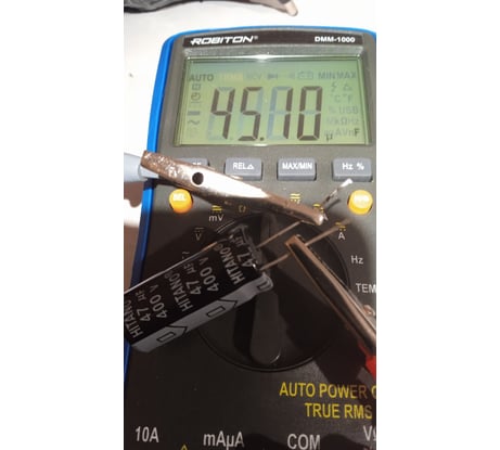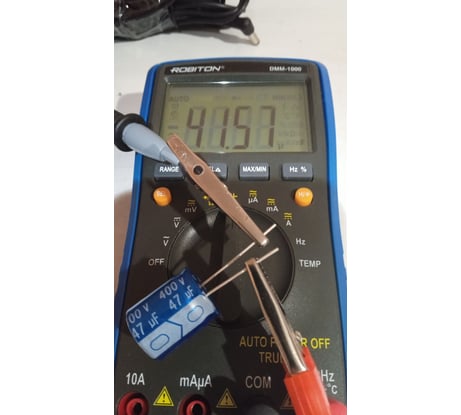 Кажет 41,57. Понятно, что мультиметр не идеален, но для примера сравнил из запасов. Даже у 10ти летних лежалых HITANO (44,37 и 45,1) и поработавшего года 3 и тоже лежалого около 7ми лет jamicon параметры лучше. Взял т.к. нужен такой размер, но наверное поищу что-то другое, а этот оставлю про запас.