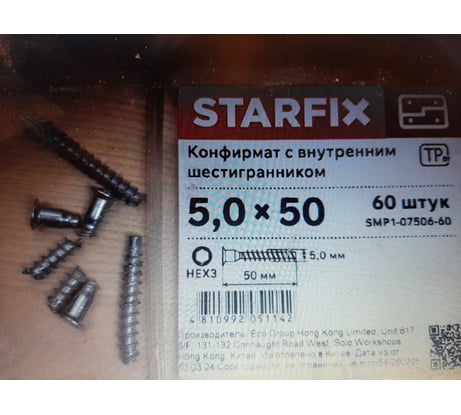 Отзывы о конфирмате с внутренним шестигранником STARFIX 5x50 мм, 60 шт. SMP1-07506-60