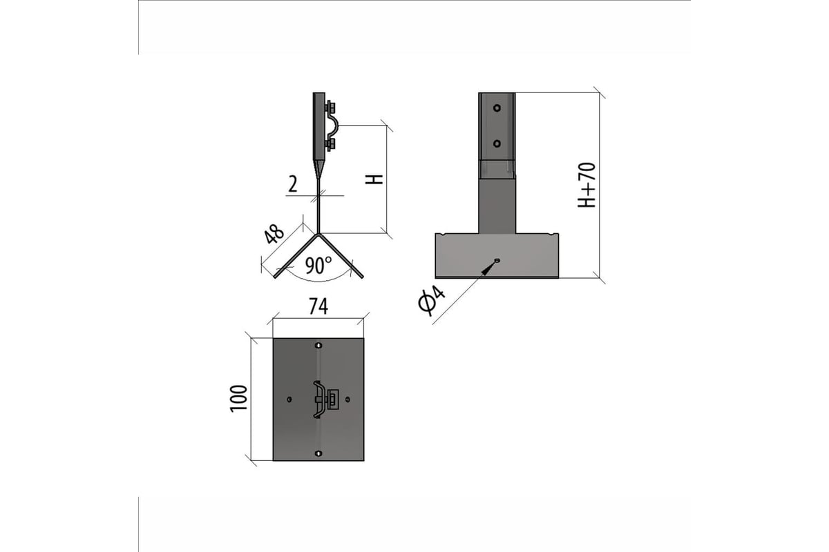Технические характеристики Система КМ болтовой с широким основанием для прутка O 5-10 мм H100 мм BKDB-H100-D5-10