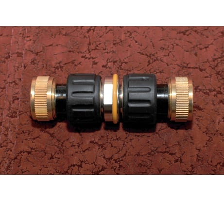 Единственный двойной коннектор, который удобно отсоединять. Отлично подходит ко всем имеющимся у меня фирменным коннекторам для садовых шлангов BOSCH, KARCHER, CLABER: легко присоединить и УДОБНО лёгко отсоединить. Очень хорошая цена здесь (370р в начале мая22).