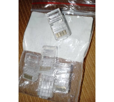 Покупая данные коннекторы не ожидал какого-то особого качества,однако был приятно удивлён-качество у этих разъёмов оказалось просто превосходное.Прекрасно обжимаются,на кабеле витая пара сидят надёжно,в гнездо RJ45 входят легко и очень плотно в нём фиксируются не шатаясь.Ножи на коннекторах латунные (не магнитятся),с тремя зубьями,в виде трезубца,так что жилу врезаются при обжимке крепко.