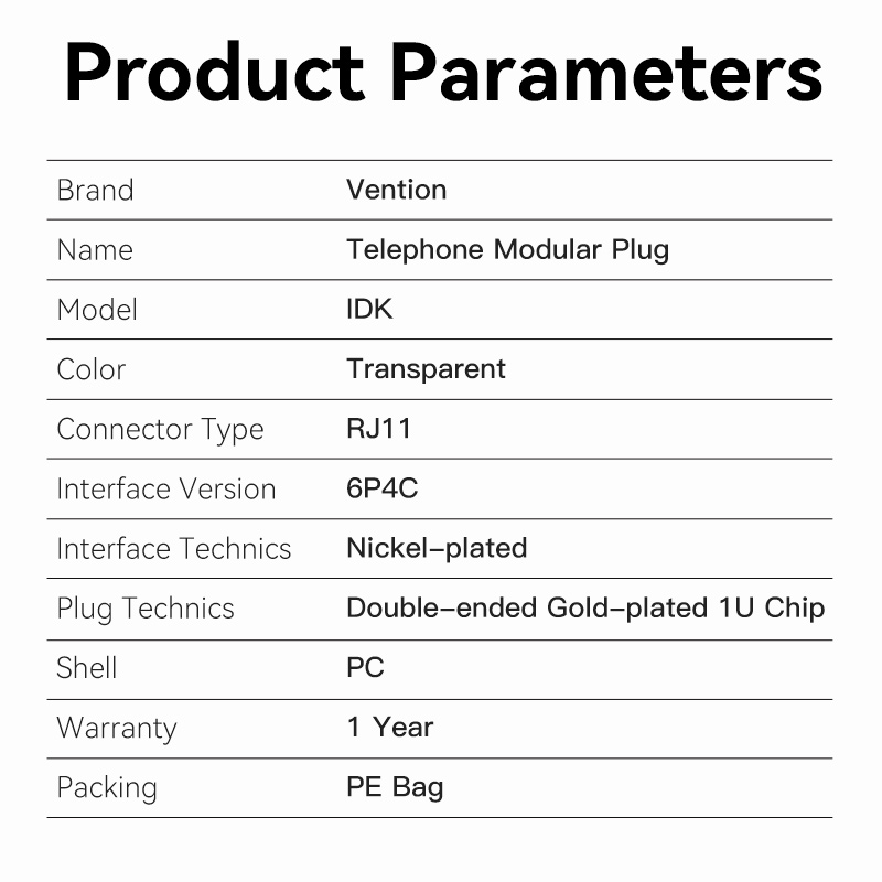 Коннектор VENTION RJ11 (6p4c), (50шт.) IDKR0-50