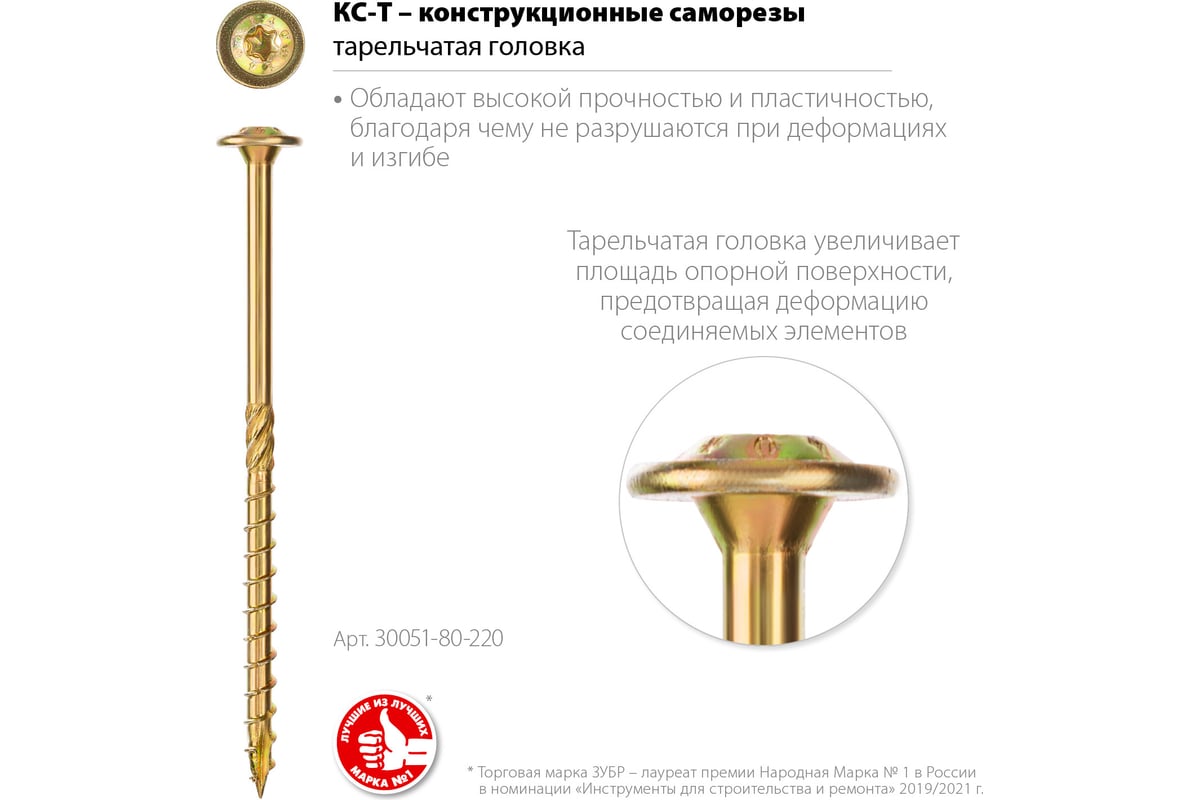 Конструкционные саморезы ЗУБР КС-Т 220x8.0 мм, 50 шт., желтый цинк 30051-80-220