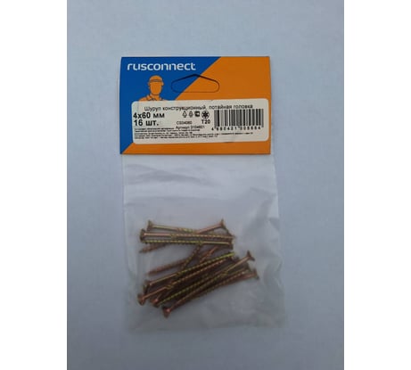Конструкционный шуруп Rusconnect 4х60 мм, потайная головка 16 шт. 3104601