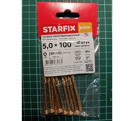 Вопросы и ответы о конструкционном оцинкованном шурупе STARFIX 5x100 мм, 1800 шт. потай., желтый SM-58988-1800