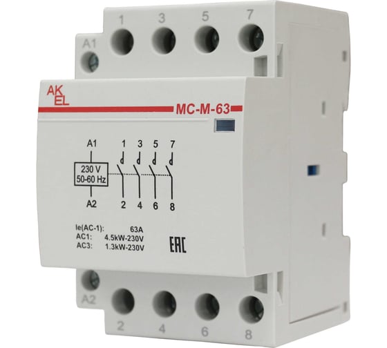 Контактор модульный Akel ВА47-МС-М-3-63-40 3 модуля 4NO/63A/230VAC 401246