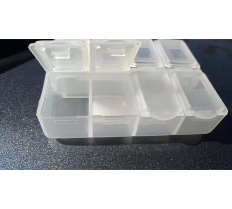Отличный органайзер, пластик качественный, крышки на каждой ячейке с защёлкой, размер для меня почти идеальный. С запасом влез в контейнер от органайзера Dewalt.