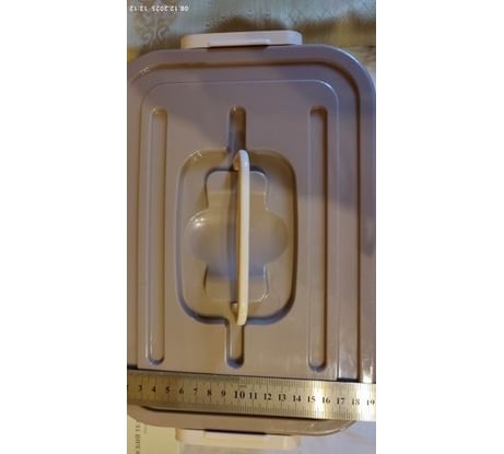 Хороший контейнер для хранения разных хозяйственных мелочей с оптимальными размерами - не очень большой, но и не очень маленький (см. фото). Защёлки работают, имеется ручка, пластик крепкий. Приспособила для хранения разных хозяйственных мелочей в кладовке. Удобно - видно всё, что в нём лежит. Рекомендую.