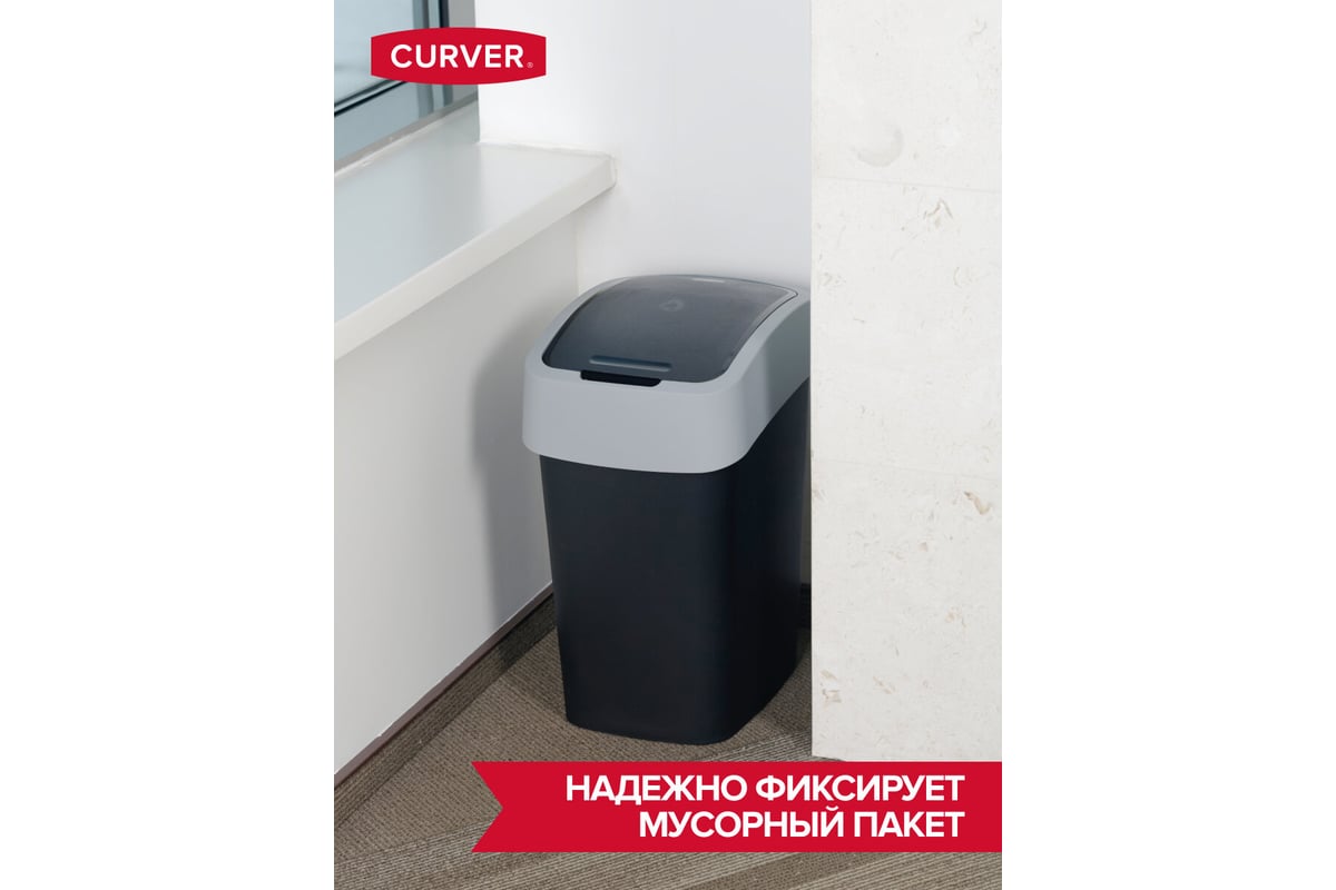 Контейнер для мусора CURVER FLIP BIN черный/серый 25 л 02171-Y09-00