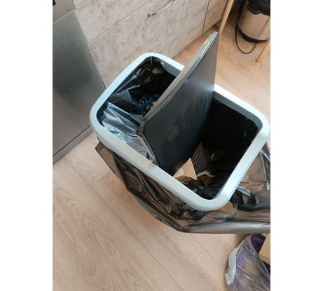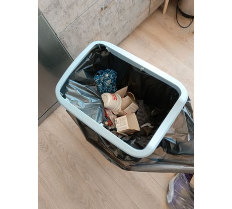 Вместительное, удобное, легко подобрать мешки. Крышку можно фиксировать открытой, а можно снять. Фиксатор хорошо держит пакеты. Не занимает много места, удачная форма.