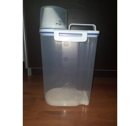 Контейнер - идеальное решение для хранения круп, макарон, муки, сахара и пр. сыпучих продуктов. Имеет компактный размер, экономит место на кухне. Защищает продукты от посторонних запахов благодаря уплотнителю в крышке. Для удобства контейнер снабжен ручкой и мерной емкостью. Стильный, удобный аксессуар впишется в любой интерьер.