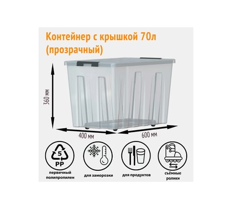 Контейнер на роликах с крышкой Rox Box 120 л, прозрачный M-120-00.07 На страницу товара3 203 ₽