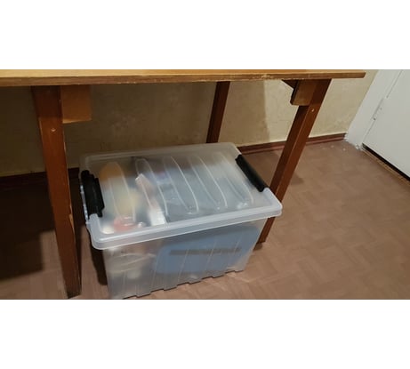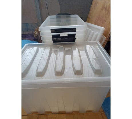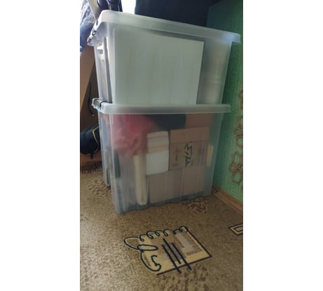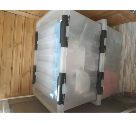 Отличный ящик!!! Вместительный, на колесах, плотно закрывается, полупрозрачный.