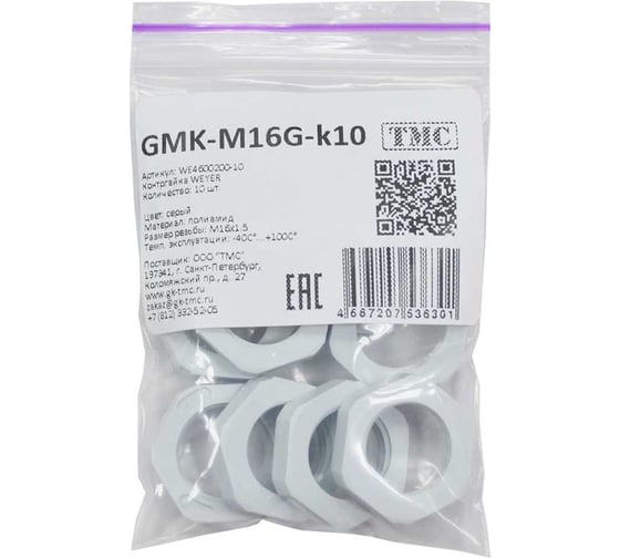 Контргайка Weyer GMK-M16G-k10 крепеж для гофрированных труб, цвет серый, внутренняя M16х1.5, комплект-10 шт. WE4600200-10