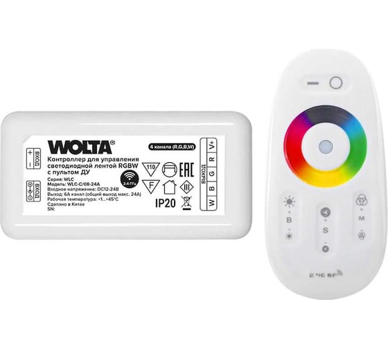 Контроллер 4-канальный Wolta для светодиодной ленты RGBW 12-24В, 24А с пультом RF2.4ГГц WLC-C/08-24A