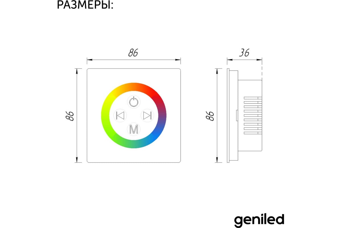 Контроллер (touch panel / настенная панель) RGB GL-12V144WTP-S предназначен для управления RGB источниками света: светодиодной лентой, светодиодными модулями, пикселями и другими устройствами напряжением DC 12-24В. Рекомендуется использовать продукцию Geniled 12-24В для управления от контроллера.