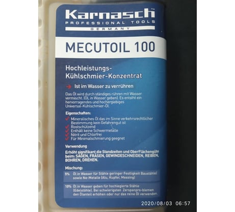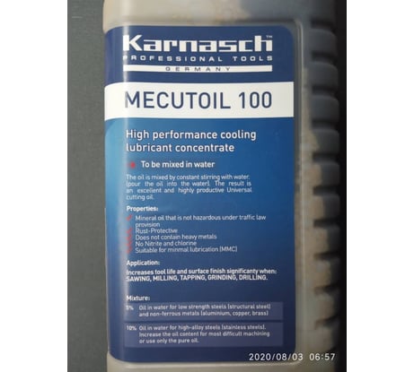 Отзывы о концентрате эмульсионном смазочно-охлаждающем 1 л Mecutoil-100 Karnasch 60.1100