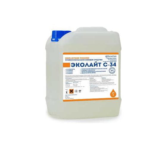 Концентрированное жидкое кислотное пенное средство для удаления минеральных и органических отложений Чистый Урал Эколайт С-34 5л 4631175913879