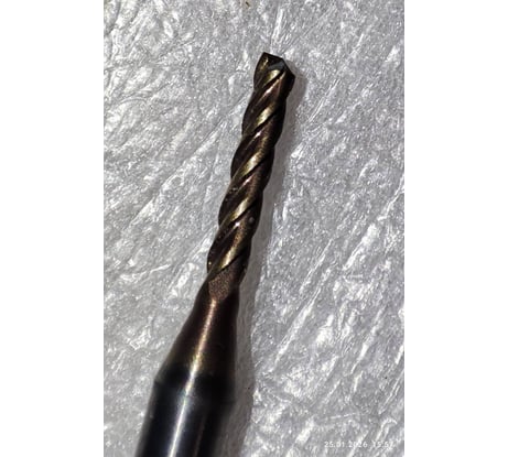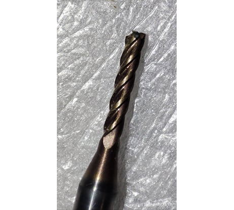 Кончик фрезы сразу скололся и это на латуни, не уверен что она для сталей. Фрезы другого производителя 1мм и 2м режут латунь как масло.