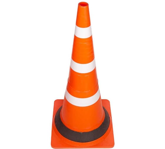 Белые полосы делают этот дорожный конус особенно заметным в темное время суток или при плохих погодных условиях.
