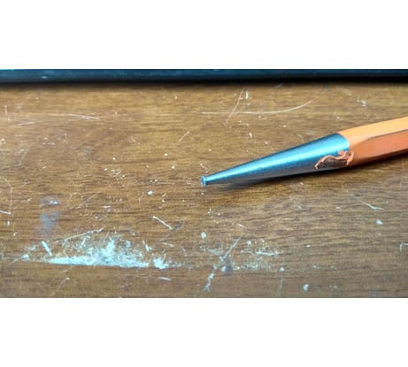 Расплющился после нескольких ударов по штифту, который был загнан пробойником этой же фирмы- который согнулся.