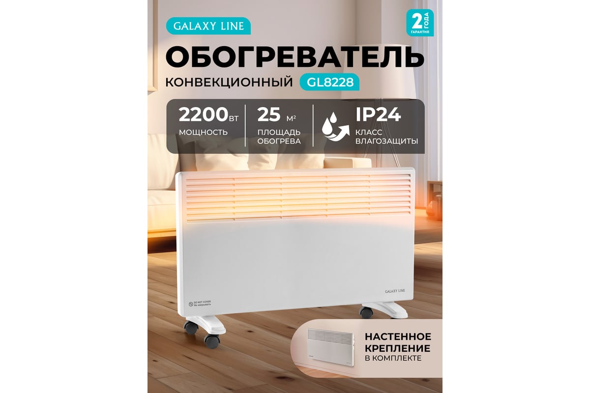 Конвекционный обогреватель Galaxy LINE GL 8228 белый, 2200 Вт, 2 режима работы 7050282281