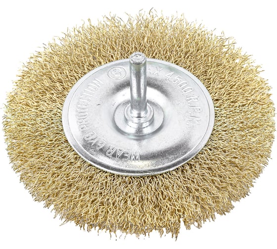 Щётка оснащена волнистой проволокой из латунированной стали, которая отличается высокой прочностью и стойкостью к коррозии. Благодаря этому обеспечивается долговечность инструмента и качественная обработка металла без повреждения поверхности.