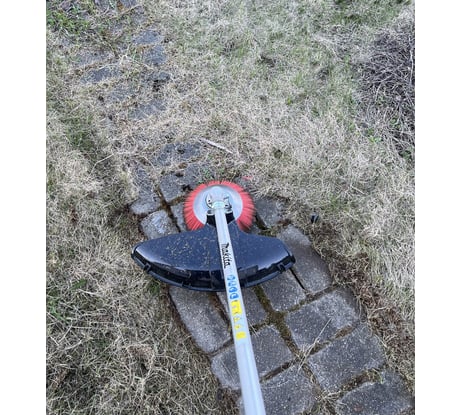 Дороговато для расходника. Нужно было почистить дорожки. Сильно все заросло. Что имеем? Триммер макита 40 вольт 1,5 квт мощность. Модель 013. В режиме повышенной мощности на середине оборотов триммер справился с очисткой дорожек блестяще. Аккумулятора 4а хватало примерно на 15 минут работы. Почистил Примерно 300 квадратных метров брусчатки. Три дня работы. Щетка кончилась на 80 процентов. заказал еще одну. Буду чистить пол террасы от старого яхтного лака который стал кусками отваливатся.