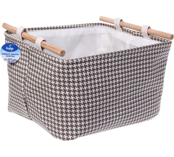 Короб для хранения с деревянными ручками Селфи ЭЛИНТ, цвет пастельно серый, 35*27*21см (лейбл) 980-0016