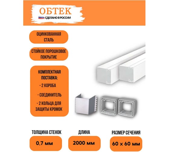 Короб кабельный металлический ОБТЕК 60х60 белый, с крышкой, соединителем и защитным кольцом (комплект из 2 штук) 6839624: профессиональное решение для масштабных кабельных систем.