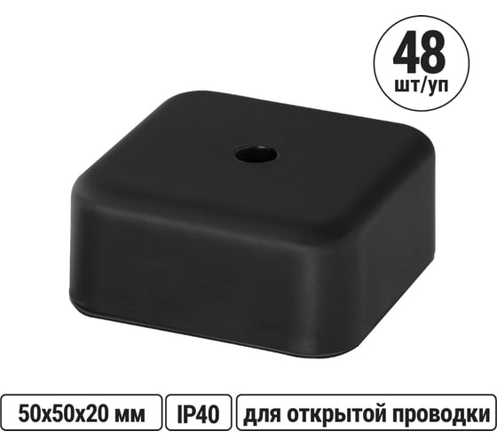 Коробка распаячная TDM ELECTRIC КР 50x50x20 ОП черная IP40, упаковка 48 штук SQ1401-0251