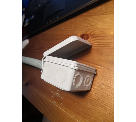 Чувствуется что пластик хорошего качества, также понравилось что отсутствуют вечно выпадающие резинки как на серых коробках. В этой коробке резинки устроены под типу мембраны, продел провод и его обволокло резиной