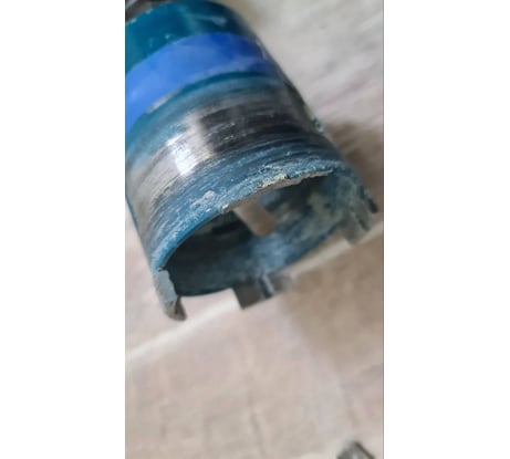 Делал отверстия этой коронкой в высокопрочном армированном бетоне в монолитном доме. Первый этап это скорость - за 1час 15минут было просверлено 11 отверстий 5-7 см глубиной. На всех отверстиях скорость примерно одинакова и после 10 отверстий также стабильно. Второй этап это ресурс, сделано 55 отверстий, остаток алмазного слоя видно на фото. Третий этап это прохождение арматуры, толщина и результат тоже видно на фото. Работал обычным китайским перфоратором. Рекомендую к покупке!