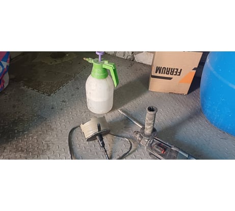 Два перекрытия 15 см. арматура 14мм. коронка на выброс. Работа с охлаждением.