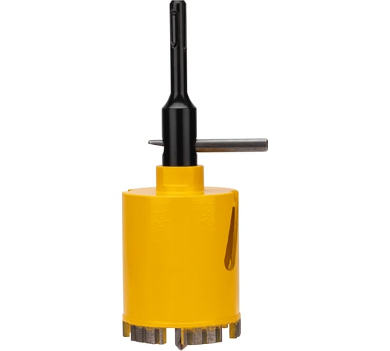 Предусмотрено сухое и мокрое сверление. Водяное охлаждение продлевает срок службы инструмента. Коронка оснащена хвостовиком SDS-plus. Рабочая часть состоит из 5 режущих сегментов высотой 10 мм. Предназначена для работы в режиме безударного сверления, что обеспечивает аккуратность отверстий и уменьшает количество пыли при работе. Рекомендуемая частота оборотов 600-900 об/мин. В комплекте поставляется центрирующее сверло.
