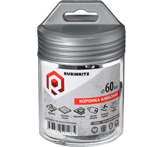 Коронка алмазная по керамике и керамограниту Rubinritz 60мм 180060