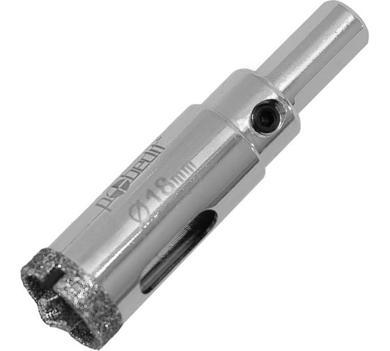 Коронка алмазная по керамограниту и стеклу Pobedit 18 х 67 мм - это высококачественный инструмент, предназначенный для сверления отверстий в стекле, керамической плитке и керамограните. Изготовлена из инструментальной стали 9ХС, что обеспечивает прочность и долговечность коронки. Особенностью данной коронки является алмазное покрытие режущей части, что гарантирует быстрое и точное сверление. Коронка Pobedit оснащена трехгранным хвостовиком, что обеспечивает надежное и стабильное крепление в дрели или шуруповерте. В комплекте идет центрирующее сверло, которое позволяет точно и быстро просверлить отверстие. Для сверления рекомендуется использовать воду, что предотвращает перегрев и продлевает срок службы коронки. Максимальная глубина сверления составляет 50 мм.