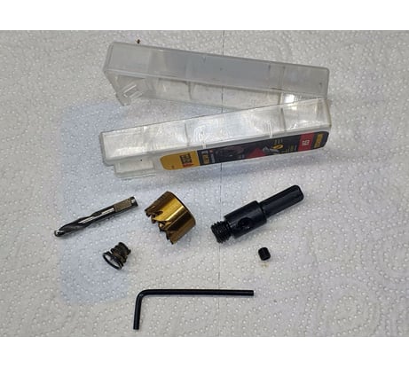- Красива. - Упаковка. Характеристики ====== - толщина режущей стенки 2mm. - Центровое сверло 5x40 с лыской, не доходящей до конца. - фиксатор штифт M5 отверстие H2.5 - в комплекте пружина экстрактор и ключ центрового сверла без маркировки. - Коробка 102x28x27, безпетельная. Есть скобка фиксатор открывания, которую сразу и не заметишь (можно ошибочно подумать, что коробка транспортно-одноразовая). - Коронка сидит на хвостовике только упираясь в небольшой бортик на резьбе M10. В первых партиях народ жаловался на плохое качество посадки (срыв резьбы). Брал на разовую работу. Просверлила сталь 5mm, видимых повреждений заточки не видно.